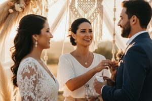 Cada rito que conduz nasce do encontro entre sua sensibilidade, seu conhecimento terapêutico e o respeito profundo pela história de cada casal.